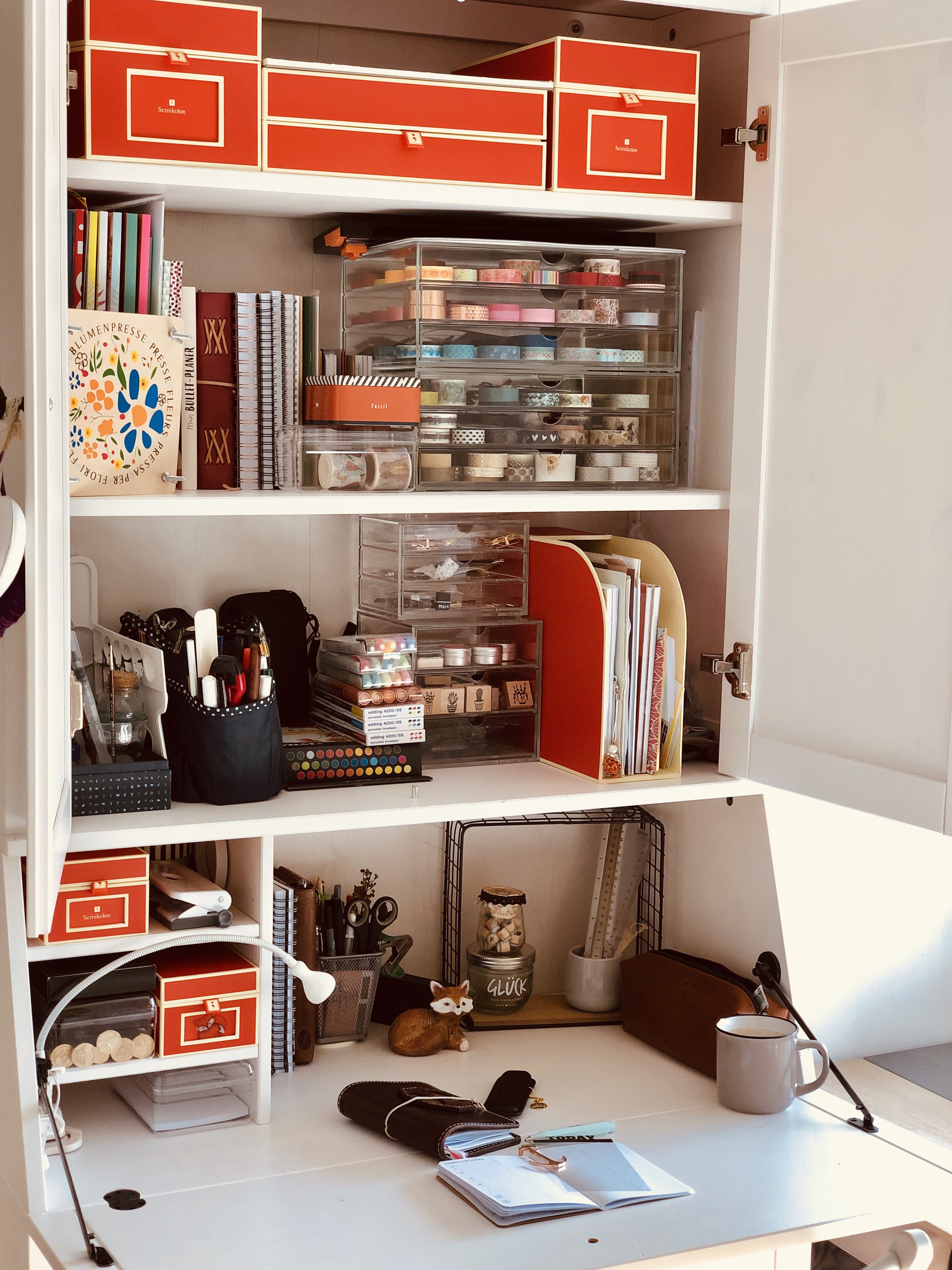 Draußen scheint wunderbar die Sonne und ich sitze zum ersten Mal hier, an meinem Sekretär der sich im Schlafzimmer befindet und den ich sonst eher als schnelle Ablagefläche benutzt habe. Er ist ja auch mega praktisch. Klappe auf, Zeug rein, Klappe zu und man hat rundherum sichtbar immer noch Ordnung.