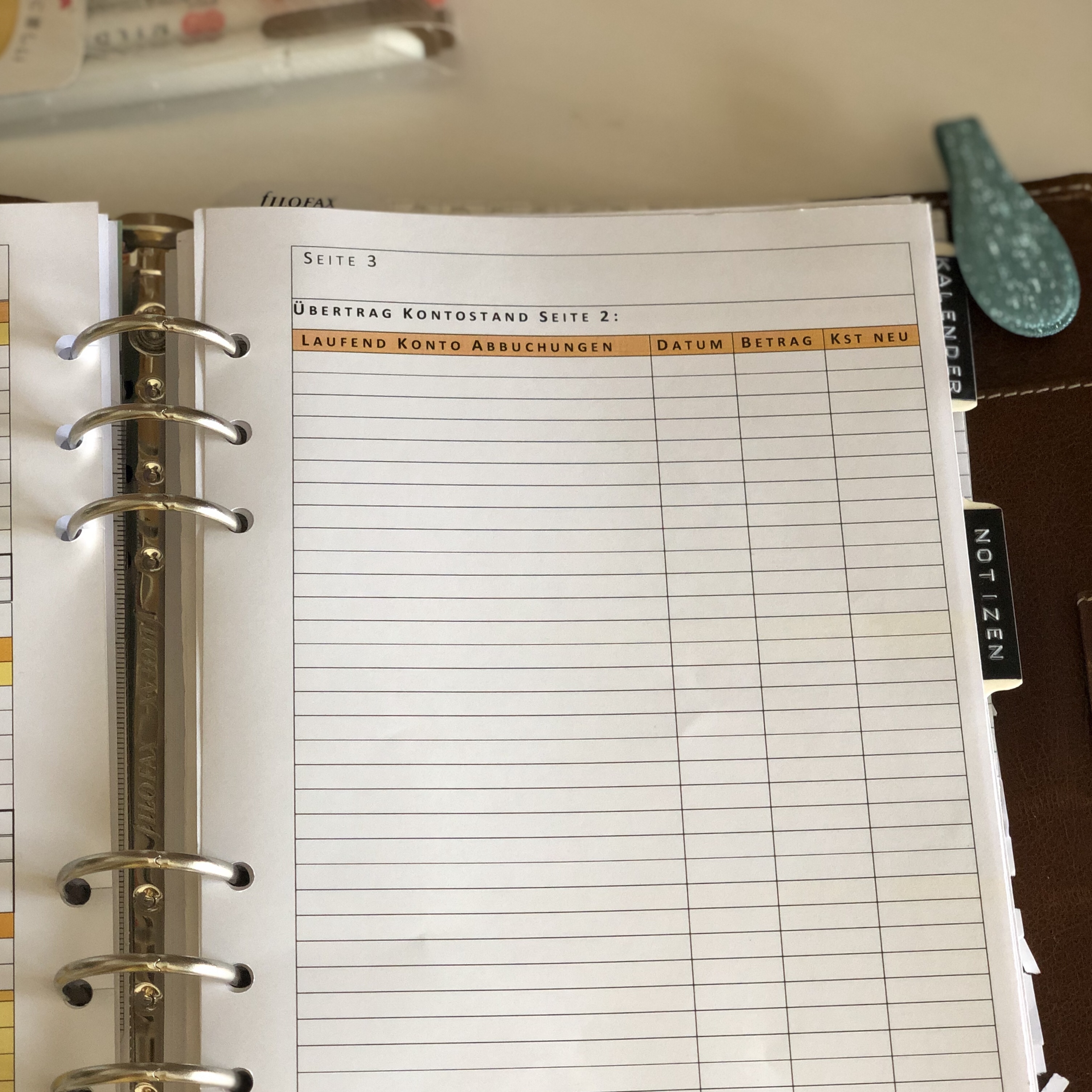 3. eine Liste in der ich alle Barausgaben erfasse um meine Kuverts im Blick zu haben