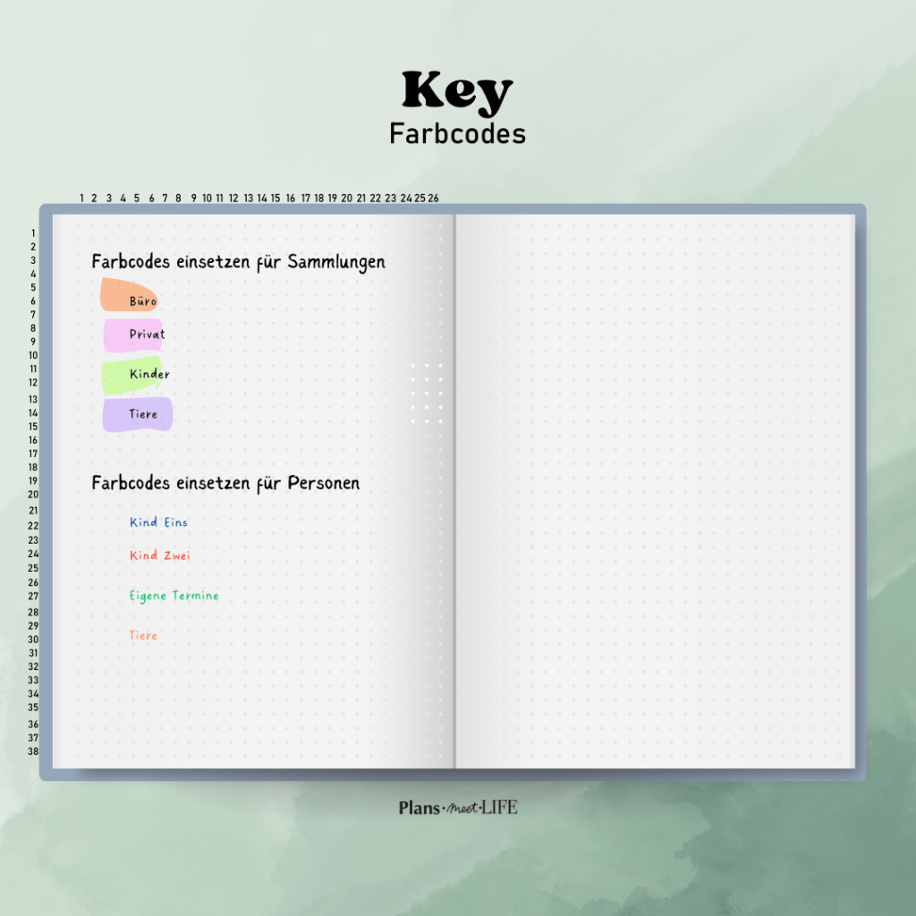 Also, experimentiere und finde heraus, welche Symbole für dich am besten funktionieren oder vielleicht sind es einfach die Farbcodes die dir das Leben leichter machen?